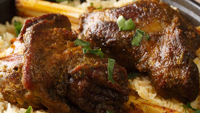 6- قدمي حنيذ اللحم إلى جانب الأرز.
