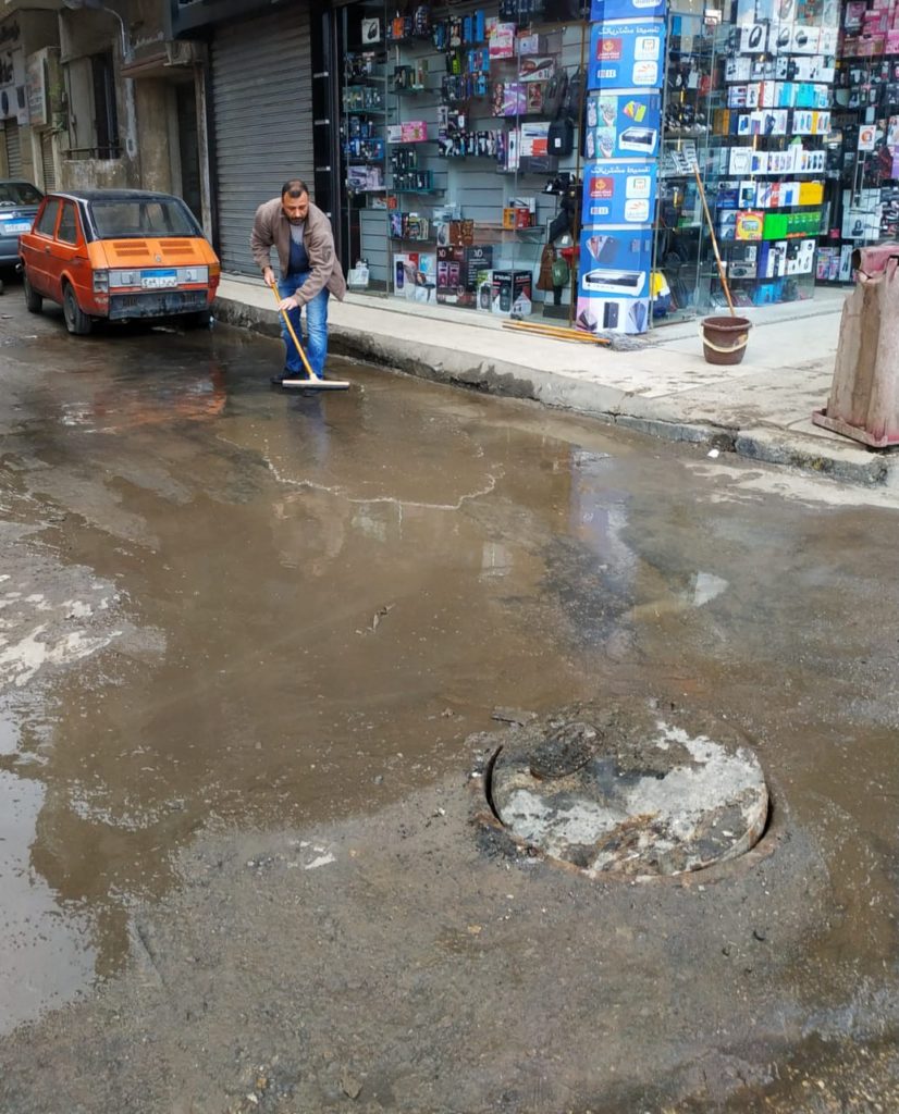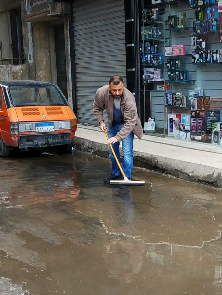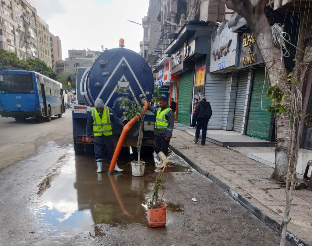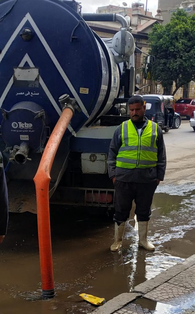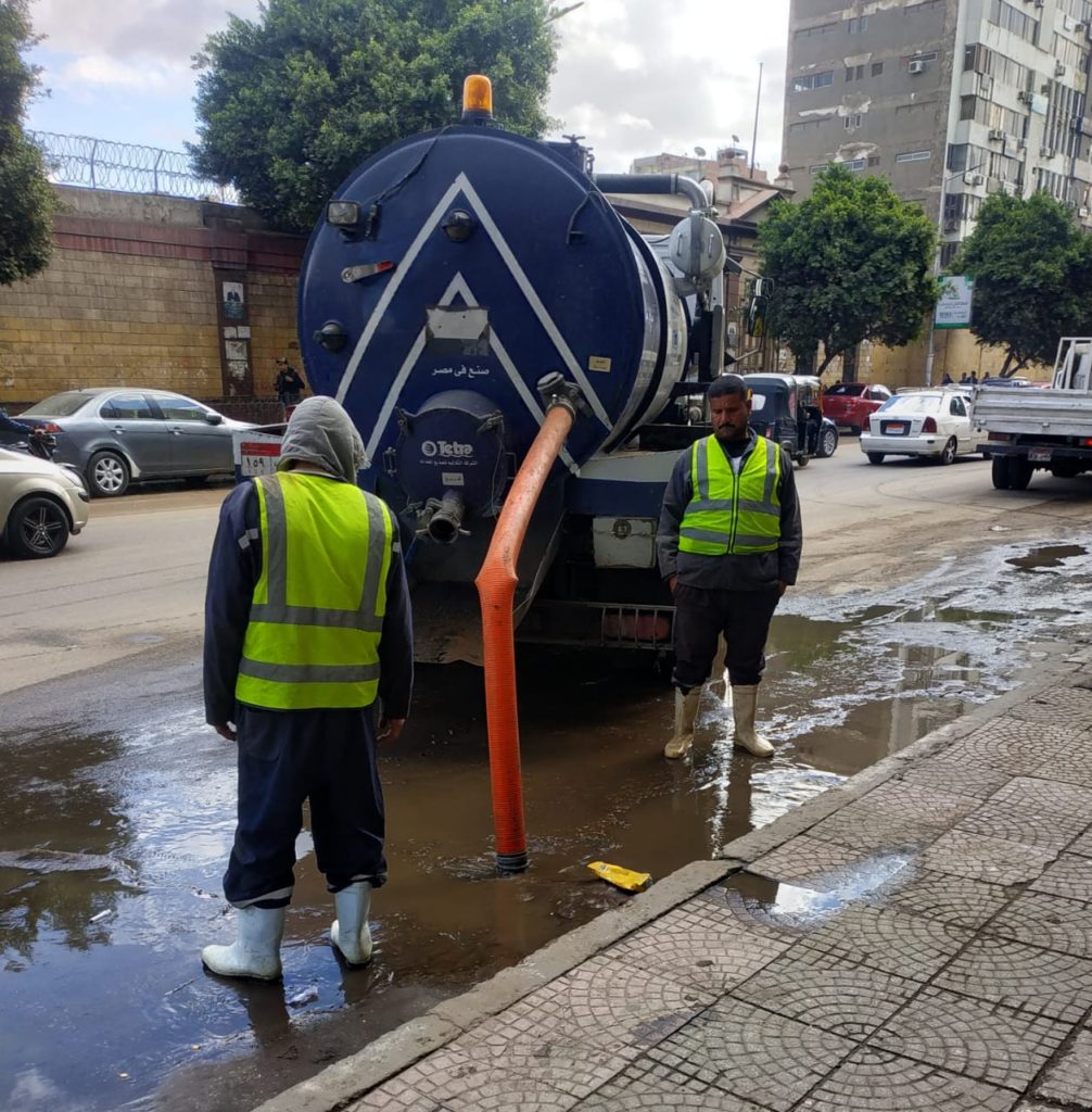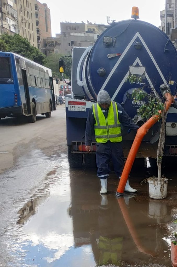 كذلك شهد الميادين والشوارع حركة دائبة ومستمر من رجال الصرف الصحي والطوارئ بالأحياء لشفط المياه من على جانبي الطريق حتى لا يتضرر أحد من المياه عند مرور السيارات بشكل سريع .