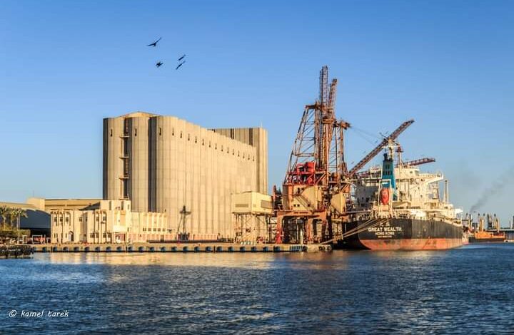 ووصل رصيد صومعة الحبوب والغلال للقطاع العام بالميناء من القمح 176287 طنًا … بينما بلغ رصيده في مخازن القطاع الخاص 106056 طنًا .