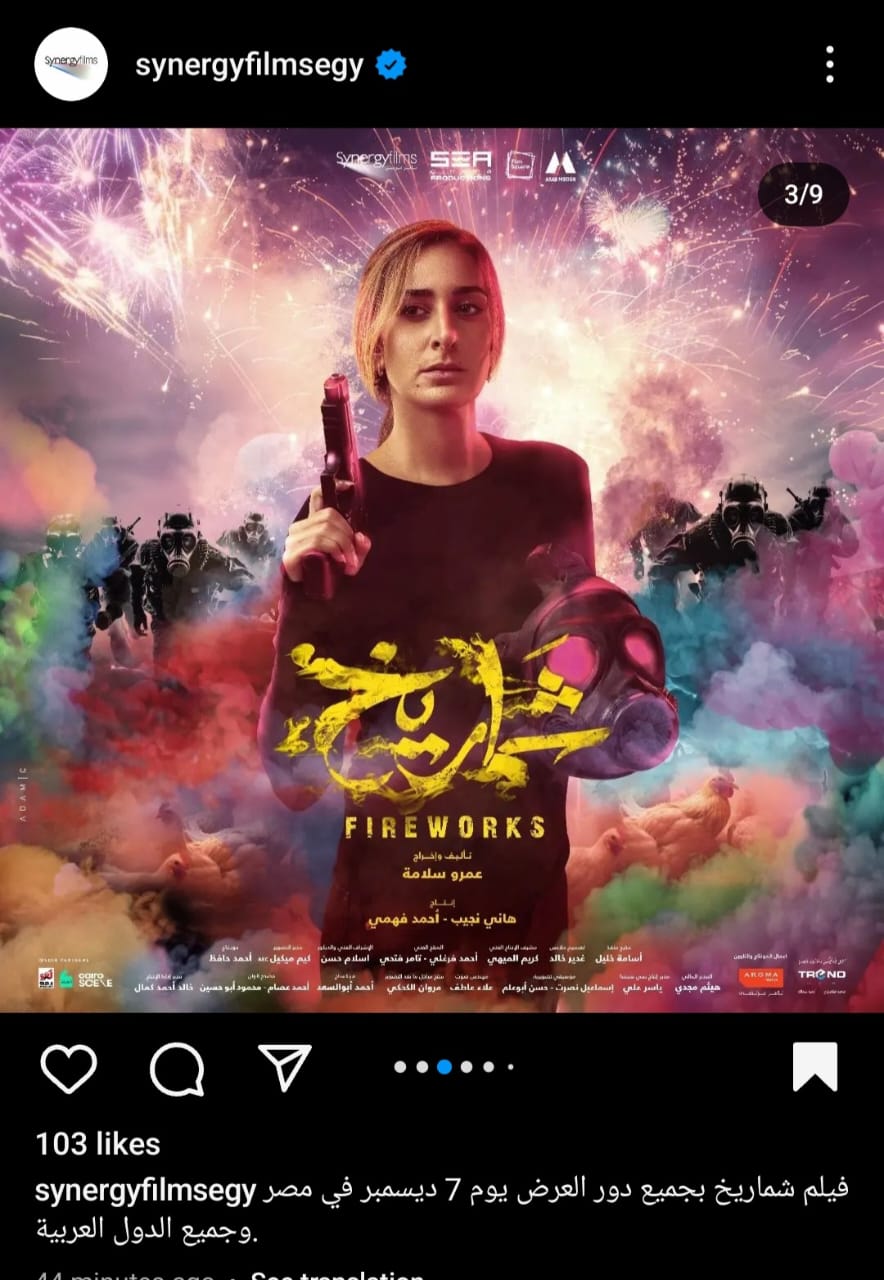 كتبت سينرجي:”فيلم شماريخ 7 ديسمبر بجميع دور العرض بالسينمات، وجميع الدول العربية”.