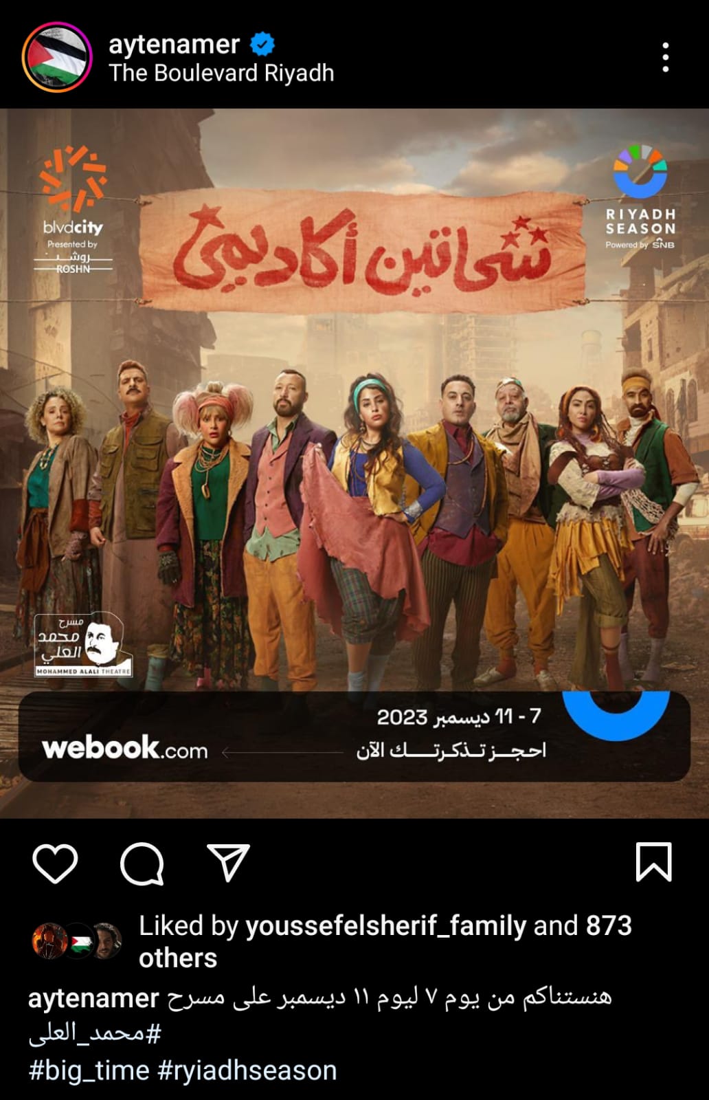 نشرت أيتن عامر صورة البوستر الرسمي للمسرحية على صفحتها الرسمية عبر موقع تبادل الصور والفيديوهات ” إنستجرام ” وعلقت قائلة ” هنستناكم من يوم 7 ليوم 11 ديسمبر على مسرح محمد العلي “.