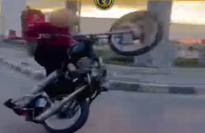 كشف ملابسات ما تم تداوله على موقع التواصل الإجتماعى “فيس بوك” بشأن قيام قائد دراجة نارية بآداء بعض الحركات الإستعراضية بطريق الكورنيش بالإسكندرية معرضاً حياته والمواطنين للخطر بالفحص أمكن تحديد وضبط مرتكب الواقعة مقيم بدائرة قسم شرطة باب شرق تم اتخاذ الاجراءات القانونية.. والإدارية ضد المذكور والمركبة .