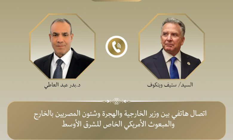 أجرى وزير الخارجية الدكتور بدر عبد العاطي، اليوم الأربعاء 20 أغسطس 2025، اتصالًا هاتفيًا مع ستيف ويتكوف، المبعوث الأمريكي الخاص للشرق الأوسط، تناول خلاله أبرز القضايا الإقليمية، وعلى رأسها الأزمة الإنسانية المتفاقمة في قطاع غزة وتطورات الملف النووي الإيراني.