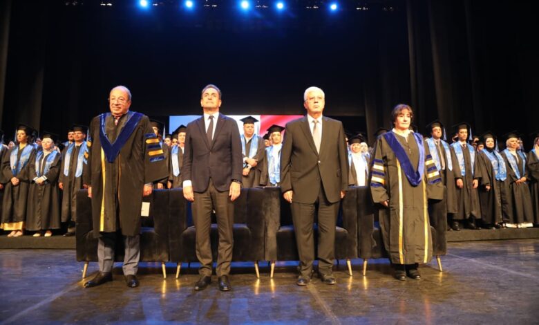 واختتم الوزير كلمته بالتأكيد على أن اليوم هو ثمرة جهد سنوات من الدراسة والبحث والمثابرة، وهو بداية جديدة لمسيرة من الإبداع والعطاء، موجهًا كلمة للخريجين قائلًا: “أنتم تمثلون الأمل في مستقبل أكثر إشراقًا، وتحملون على عاتقكم مسؤولية أن تكونوا جيلًا قادرًا على الإسهام في النهضة العلمية والاقتصادية لوطننا، وأوصيكم أن تجعلوا من كل ما تعلمتموه أداة لتغيير الواقع نحو الأفضل، وأن تكونوا قدوة في أخلاقيات البحث العلمي، والعمل بروح الفريق، والحرص على خدمة المجتمع، وكونوا على يقين أن مصر تعول عليكم في مواجهة تحديات المستقبل، وأن ما تم اكتسابه من معارف ومهارات هو فرصتكم للانطلاق في مجالات الابتكار والريادة محليًا وإقليميًا ودوليًا، واجعلوا من تخرجكم نقطة انطلاق، واعتبروا كل نجاح تصلون إليه خطوة جديدة في مسيرة أوسع من العطاء لوطنكم”.