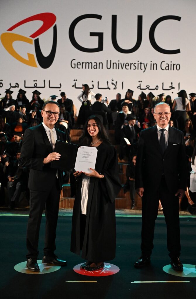 أفتتح الدكتور أشرف منصور، رئيس مجلس أمناء الجامعة الألمانية بالقاهرة ورئيس مجلس أمناء الجامعة الألمانية الدولية إحتفالية الجامعة السنوي بتخريج دفعة جديدة من طلابها لعام 2025، على مدار ثلاث أيام متتالية من كليات الهندسة و علوم المواد ، هندسة وتكنولوجيا الاعلام ، هندسة و تكنولوجيا المعلومات، العلوم التطبيقية و الفنون ، الحقوق و الدراسات القانونية ، الصيدلة و التكنولوجيا الحيوية ، تكنولوجيا الإدارة ، برنامج الهندسة المدنية ، برنامج الهندسة المعمارية و التصميم الحضري .