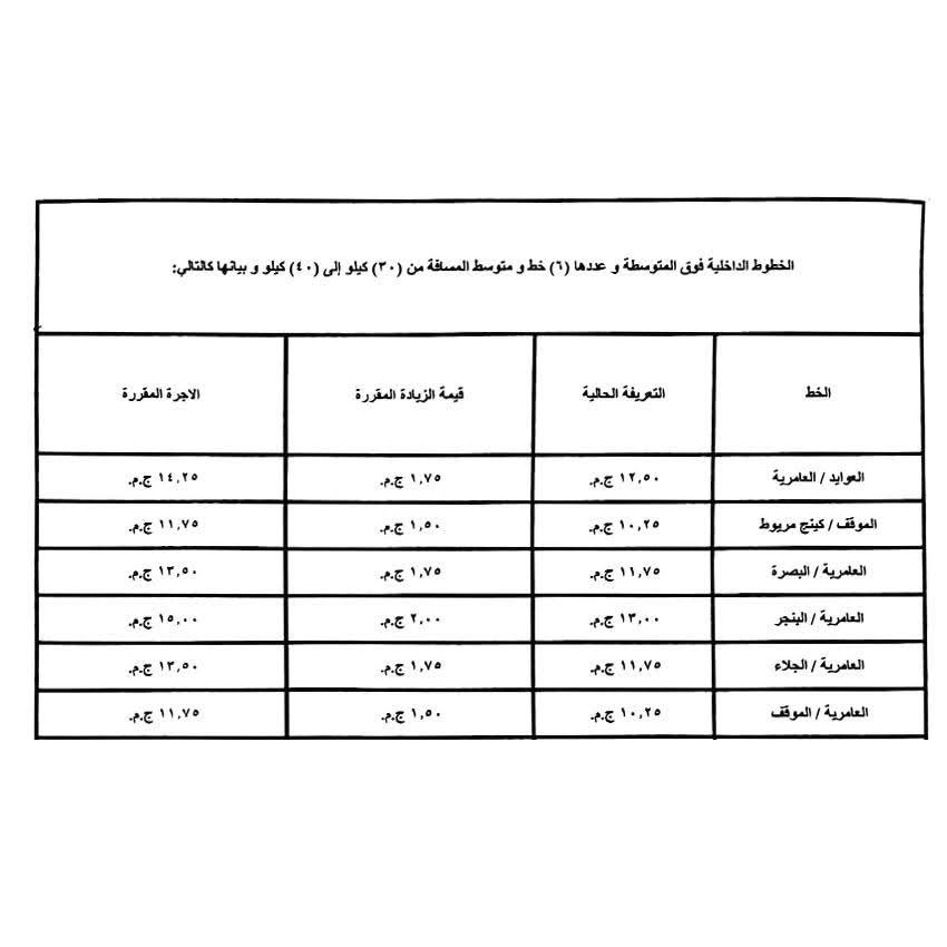 وشدد المحافظ على ضرورة الإعلان الواضح عن التعريفة الجديدة في جميع المواقف والمحطات، مع إلزام السائقين بوضع ملصقات رسمية تتضمن خط السير والأجرة المقررة لكل وسيلة نقل، منعًا لأي تلاعب أو تقسيم غير قانوني لخطوط السير.