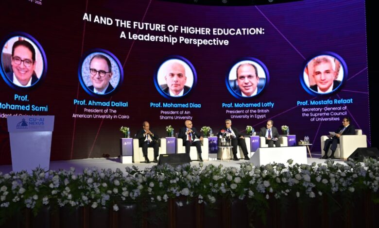 شهدت قاعة الاحتفالات الكبري جلسة رفيعة المستوى بعنوان “الذكاء الاصطناعي ومستقبل التعليم العالي: منظور قيادي” بمشاركة نخبة من رؤساء الجامعات المصرية والدولية وصنّاع القرار في التعليم العالي، وبحضور نواب رئيس الجامعة، وعدد من عمداء الكليات، ولفيف أعضاء هيئة التدريس، والطلاب.