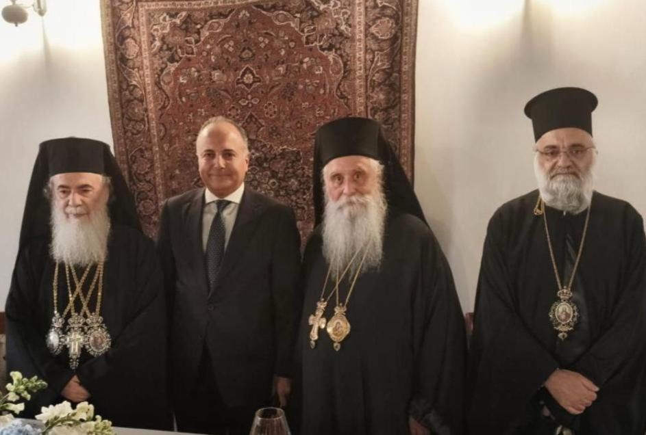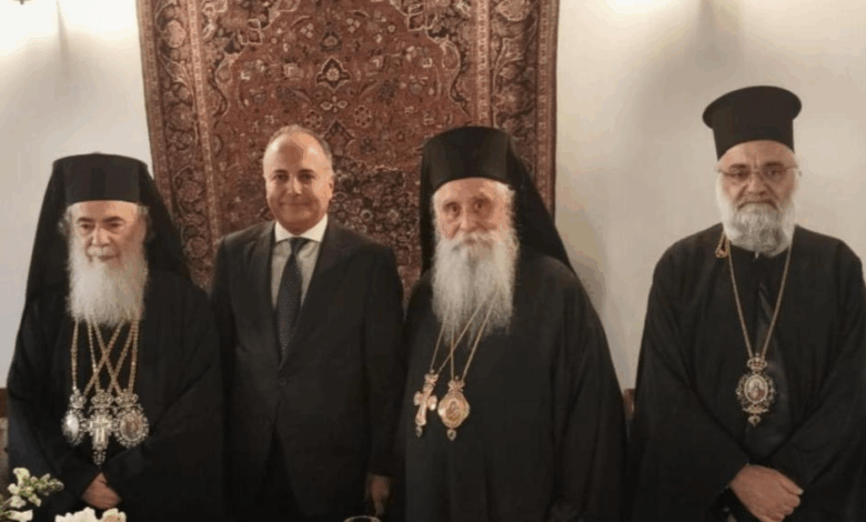 السفير المصري في رام الله يشارك في مراسم ترسيم رئيس أساقفة سيناء وفران ورائثو (رئيس دير القديسة كاترين) بكنيسة القيامة