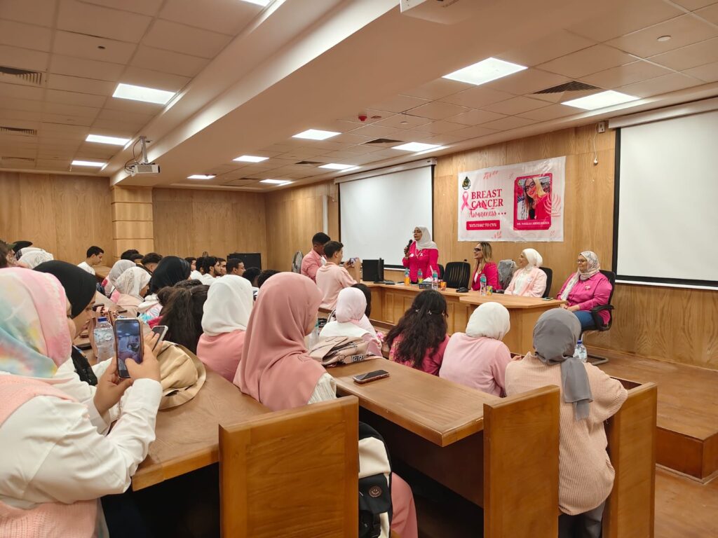 نظمت كلية الطب والجراحة بجامعة القاهرة الأهلية ، برعاية د. محمد سامي عبد الصادق المكلف بأعمال رئيس الجامعة، وإشراف د. جيهان المنياوي عميد كليات القطاع الصحي بالجامعة ندوة توعوية تحت عنوان ” Pink it UP in October، حاضر خلالها د. نجلاء عبد الرازق أستاذ الأشعة بكلية طب قصر العيني والمنسق العام السابق للبرنامج القومي للكشف المبكر عن سرطان الثدي، وذلك بالتزامن مع شهر أكتوبر الوردي( شهر التوعية بسرطان الثدي) الذي يستهدف نشر الوعي حول المرض وتشجيع الفحص المبكر، وتقديم الدعم للمصابين.