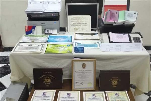 وعقب تقنين الإجراءات جرى مداهمة مقر الكيان وضبط المتهم وعثر بحوزته على عدد من الشهادات خالية البيانات منسوب صدورها للكيان وطلبات التحاق ومطبوعات دعائية تستخدم في الإيقاع بالضحايا.