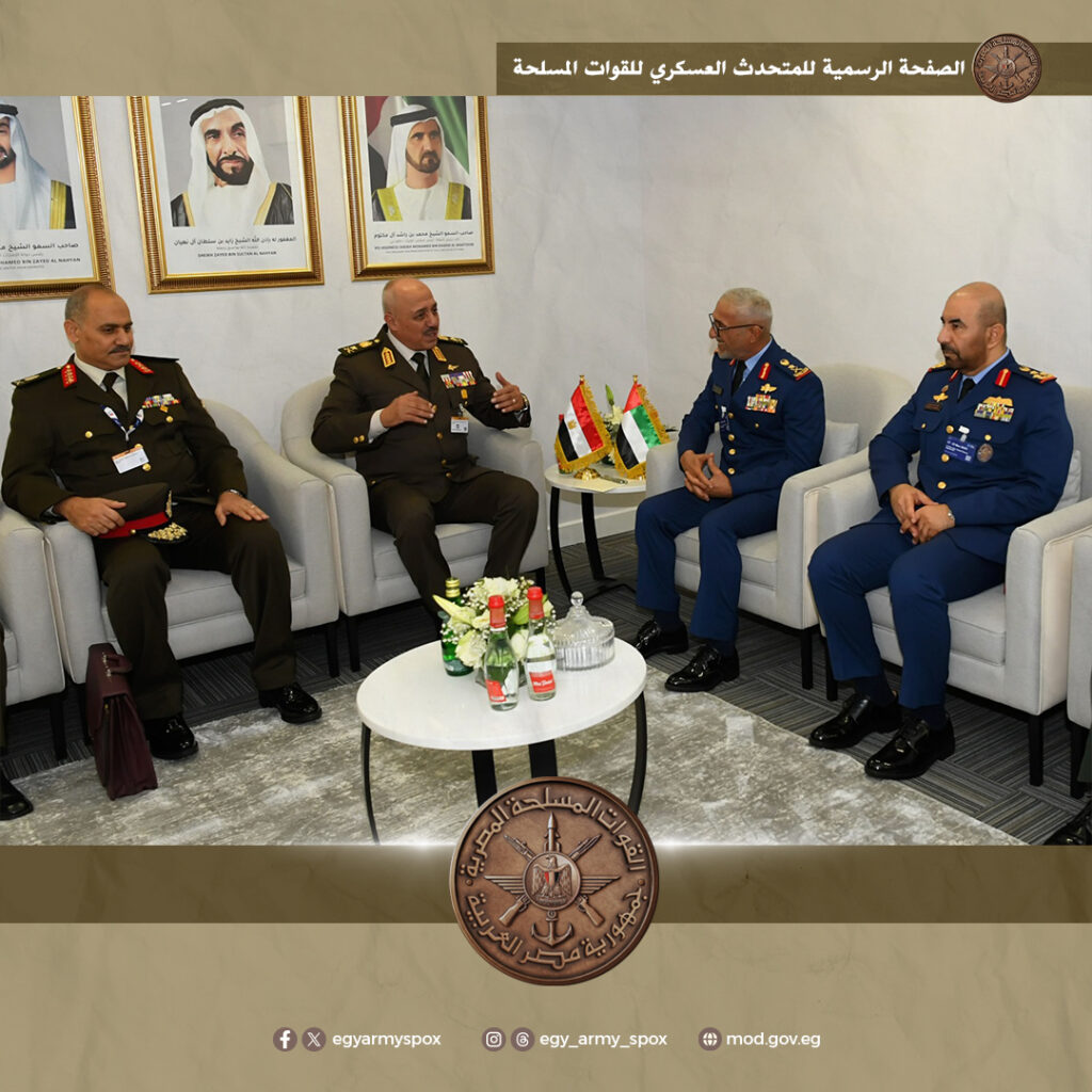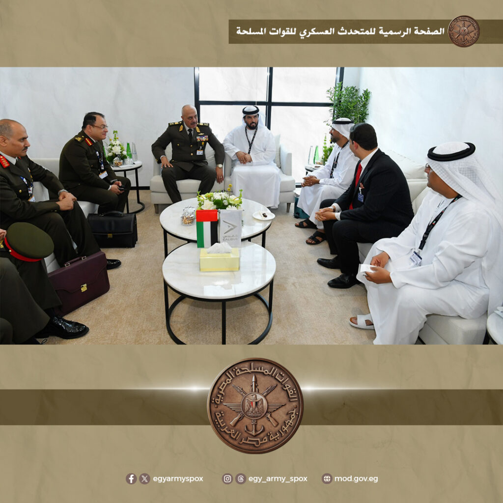 وعلى هامش فعاليات المعرض، التقى الفريق أحمد خليفة رئيس أركان حرب القوات المسلحة الفريق الركن مهندس عيسى سيف محمـد المزروعى رئيس أركان القوات المسلحة الإماراتية وتناول اللقاء مناقشة عدد من الموضوعات ذات الإهتمام المشترك وسبل تعزيز علاقات التعاون العسكرى بين القوات المسلحة المصرية والإماراتية.