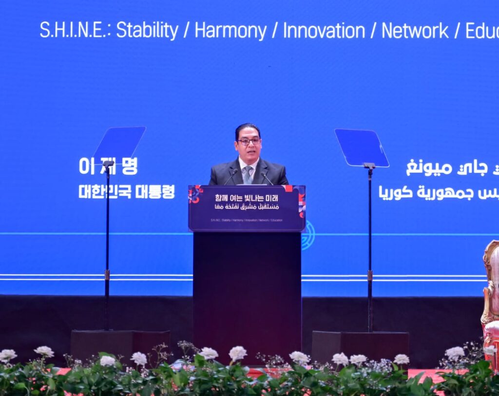 كما أشار الرئيس الكوري إلى مبادرة “SHINE” والتي تشمل ثلاثة مجالات تتمثل في السلام والازدهار والثقافة، وفتح مستقبل مشرق للشرق الاوسط وشبة جزيرة كوريا لتحقيق الاستقرار، وأن الحكومة الكورية ساهمت بشكل مباشر في إرساء السلام داخل الشرق الأوسط، معلنًا عن تقديم كوريا مساهمات بمقدار ١٠ ملايين دولار للهلال الأحمر المصري، واتفاقه مع فخامة الرئيس عبد الفتاح السيسي علي المشاركة في إعادة الاعمار داخل قطاع غزة، مؤكدًا حرصه على تحقيق مستقبل أكثر ازدهارًا من خلال الابتكار المشترك ودفع التنمية الاقتصادية.