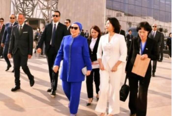أعربت السيدة انتصار السيسي، قرينة رئيس الجمهورية، عن فخرها باستقبال ضيوف مصر في المتحف المصري الكبير، وفي مقدمتهم السيدة كيم هي-كيونج، قرينة رئيس جمهورية كوريا، التي تزور القاهرة في إطار الزيارة الرسمية لزوجها.