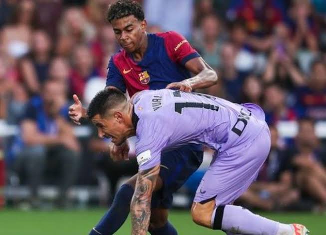 أمامهما: ماركوس راشفورد، داني أولمو، لامين يامال.