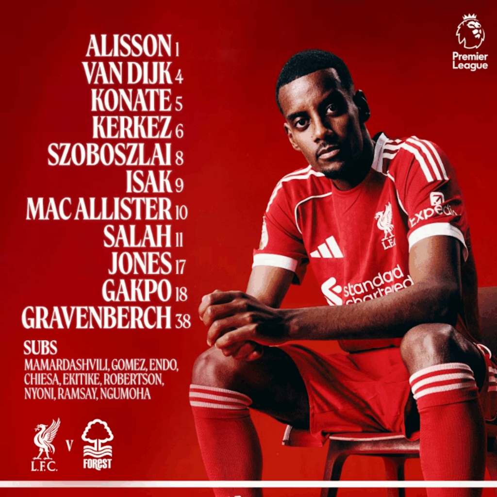 ليفربول وفورست يعلنان التشكيل الرسمي لمواجهة الدوري الإنجليزي