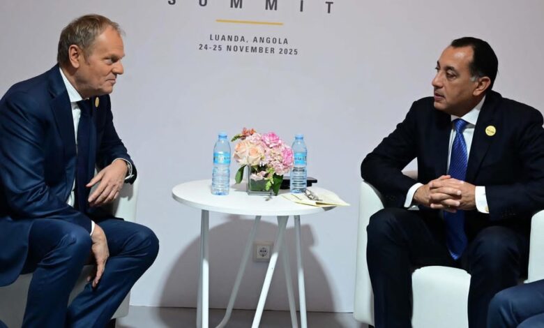 التقى الدكتور مصطفى مدبولي، رئيس مجلس الوزراء، اليوم، السيد دونالد توسك، رئيس وزراء جمهورية بولندا، على هامش مشاركته في القمة السابعة للاتحاد الأفريقي والاتحاد الأوروبي، المُنعقدة بالعاصمة الأنجولية لواندا، نيابة عن السيد الرئيس عبد الفتاح السيسي، رئيس الجمهورية، وذلك بحضور الدكتور بدر عبدالعاطي، وزير الخارجية والهجرة وشئون المصريين بالخارج، والسفيرة/ نيفين الحسيني، سفيرة مصر لدى جمهورية أنجولا.