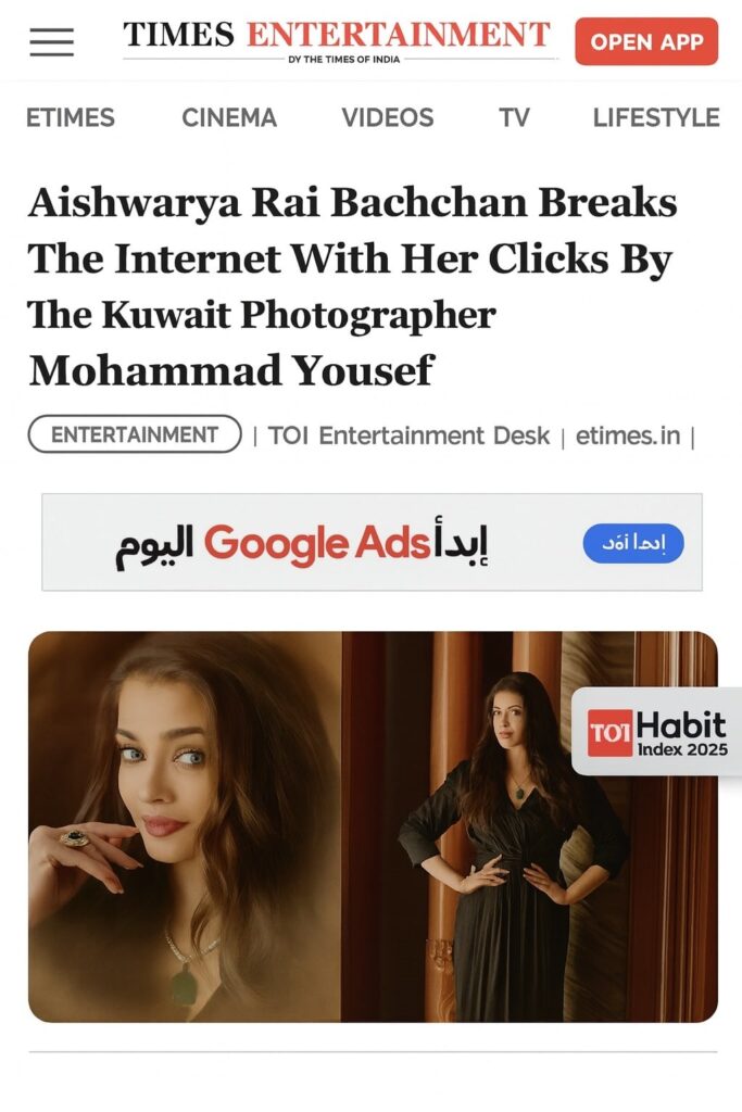 وقد تحول هذا التعاون الفني الرفيع إلى حديث الساعة في الأوساط الفنية والترفيهية، حيث تداولت أبرز المواقع الإخبارية والمنصات الفنية الكبرى، مثل Times Entertainment، لقطات “يوسف” التي وُصفت بأنها “كسرت الإنترنت” ونجحت في جذب ملايين المشاهدات فور نشرها. ويعود الفضل في هذا الاهتمام إلى الطابع الفخم والسينمائي الذي يتميز به أسلوب يوسف، والذي أبرز الجاذبية الخالدة والعمق لملامح النجمة آيشواريا راي.