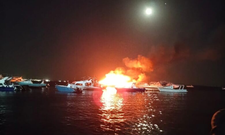 حريق هائل يلتهم مركبًا في محيط نادي الرياضات البحرية بالغردقة