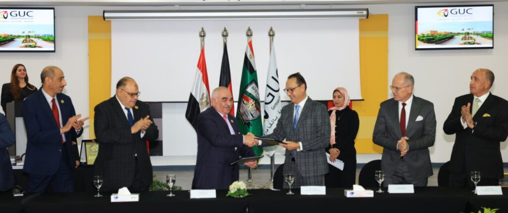 وتابع إلى إن توقيع هذه الاتفاقية يعكس التزام الجامعة الألمانية بالقاهرة بدعم مؤسسات الدولة امتداداً لدورها التنموي و المجتمعي الملموس بكافة ربوع مصر من شمالها إلى جنوبها ومن شرقها إلى غربها، فقد ساهمت الجامعة بتنفيذ الهوية البصرية للمحافظات ، و دعم النابغين و المتفوقين بمنح دراسية لأوائل محافظات الجمهورية ، مؤكداً ان الجامعة الألمانية تضع كافة خبراتها وإمكاناتها الأكاديمية والبحثية فى خدمة هذا التعاون البناء مع هيئة قضايا الدولة بما يسهم فى تعزيز المهارات القانونية الحديثة، ودعم التحول الرقمي، وتبادل الخبرات فى المجالات ذات الاهتمام المشترك. موضحاً أن الجامعة تسعى لشراكات تصنع مستقبل التعليم القانوني ، لذا فأن هذه الشراكة مع واحدة من أعرق الهيئات القانونية في مصر يمثل نموذجًا للتكامل بين المؤسسات التعليمية والهيئات الوطنية بما يخدم الدولة المصرية حاضرها ومستقبلها.