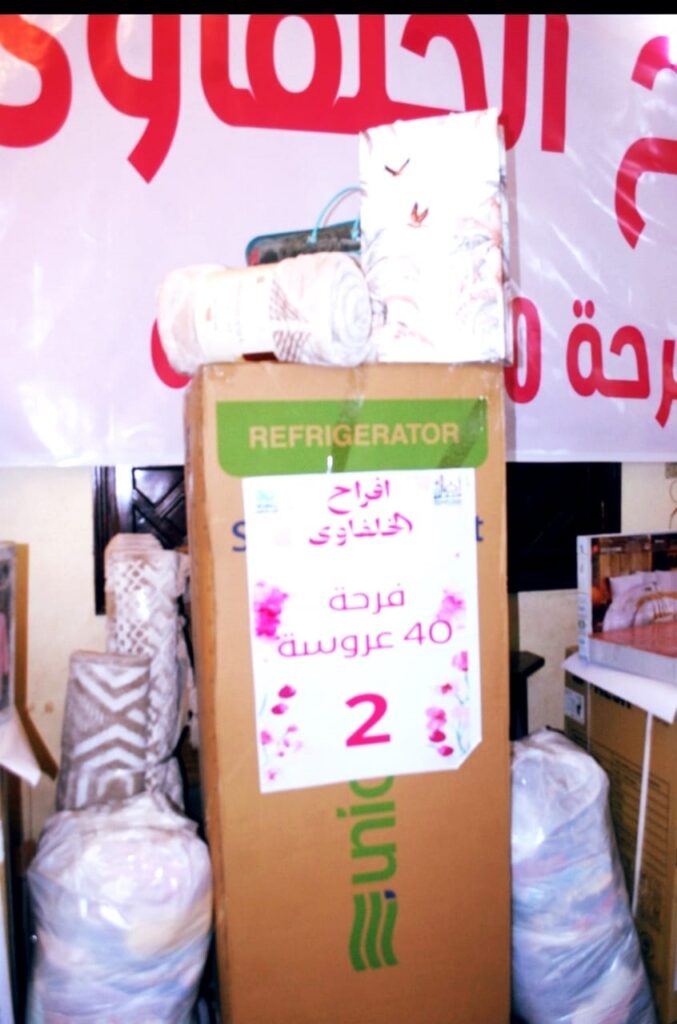 أدخلت مؤسسة الخلفاوي للخدمات الاجتماعية بالتعاون لجنة زكاة مسجد الخلفاوي بشبرا الفرحة في نفوس 40 عروسا في يوم سعيد قامت فيه بتوزيع كل ماتحتاجه كل عروس من أجهزة ومفروشات وأثاث وأدوات منزلية لإتمام جوازهن في يسر وأمان .