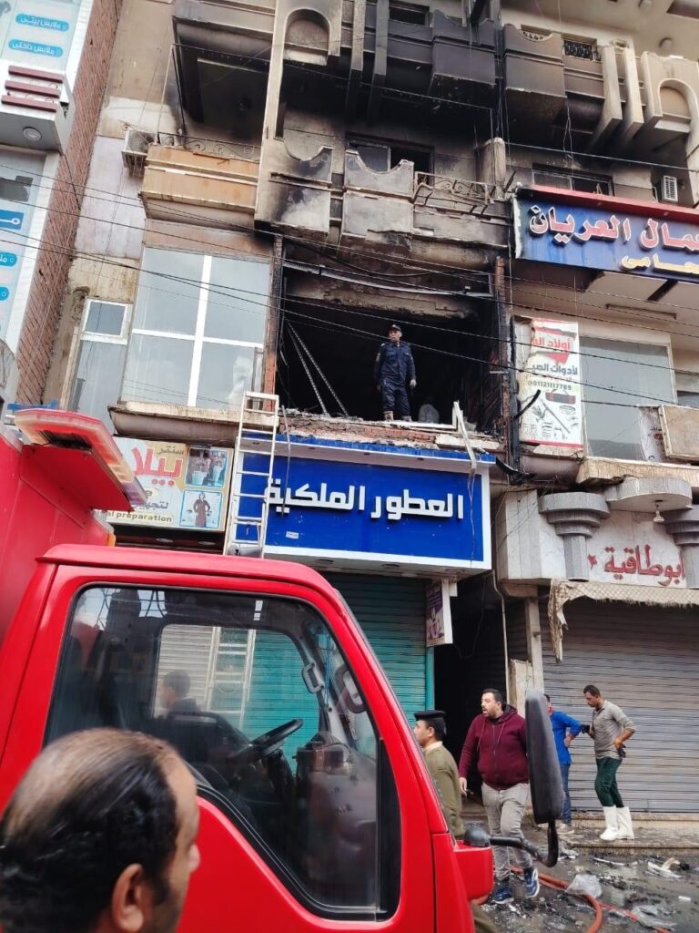السيطرة على حريق هائل بمعرض أسلحة وذخيرة داخل برج سكني بطهطا
