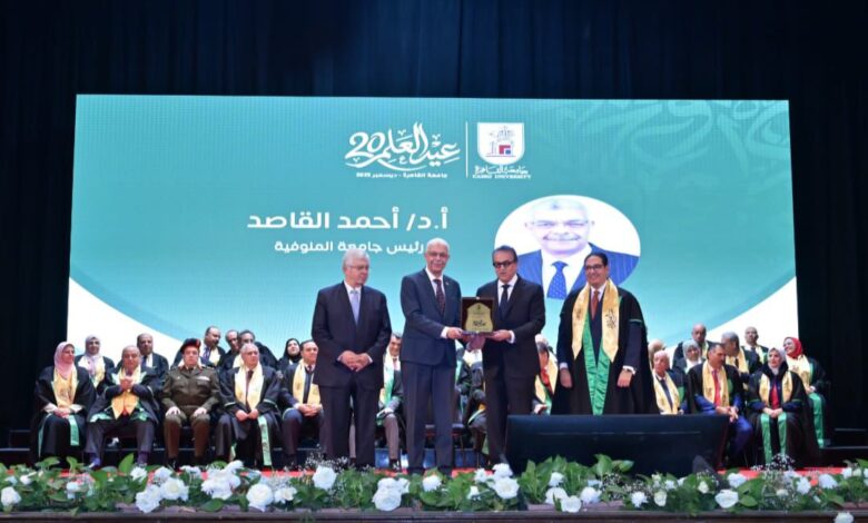 فى حفلها التاريخي بعيد العلم بجامعة القاهرة فى نسخته العشرين، وبحضور كبار رجال الدولة، فى مقدمتهم د.خالد عبدالغفار نائب رئيس الوزراء للتنمية البشرية ووزير الصحة والسكان، ود.أيمن عاشور وزير التعليم العالي والبحث العلمي، كرمت جامعة القاهرة كوكبة من أبنائها المتميزين وأبرز رموزها الأكاديمية الذين يتولون قيادة عدد من الجامعات ومؤسسات التعليم العالي.