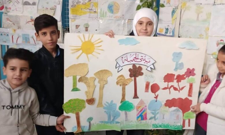 وشارك الأطفال في إعداد مجلة حائط في صورة لوحة جماعية، عبروا خلالها عن رؤيتهم للبيئة الجميلة باستخدام قصاصات الورق لتشكيل عناصر الطبيعة.