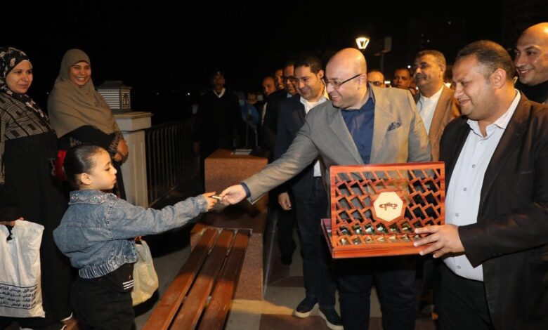 وحرص المحافظ على تهنئة المواطنين بالعام الميلادي الجديد ووزع عليهم الشيكولاته” خاصة الأطفال “ابتهاجا بهذه المناسبة، معرباً عن أمله أن يكون عاماً سعيدا ملؤه الخير والبركة والمحية، حيث شهدت الجولة أجواء من الفرح والبهجة، موجهاً مسئولي الكورنيش بمواصلة جهود توفير كل الخدمات والسبل لضمان استمتاع المواطنين والزوار بالممشى خلال احتفالات رأس السنة،موجها بتكثيف أعمال النظافة بالممشى السياحي والكورنيش، وتنظيم حركة الدخول والخروج، مع توفير فرق عمل على مدار الساعة للتعامل مع أي طوارئ خلال الاحتفالات.