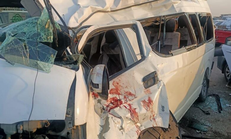 إصابة 5 أشخاص إثر اصطدام ميكروباص علي طريق بنها الحر