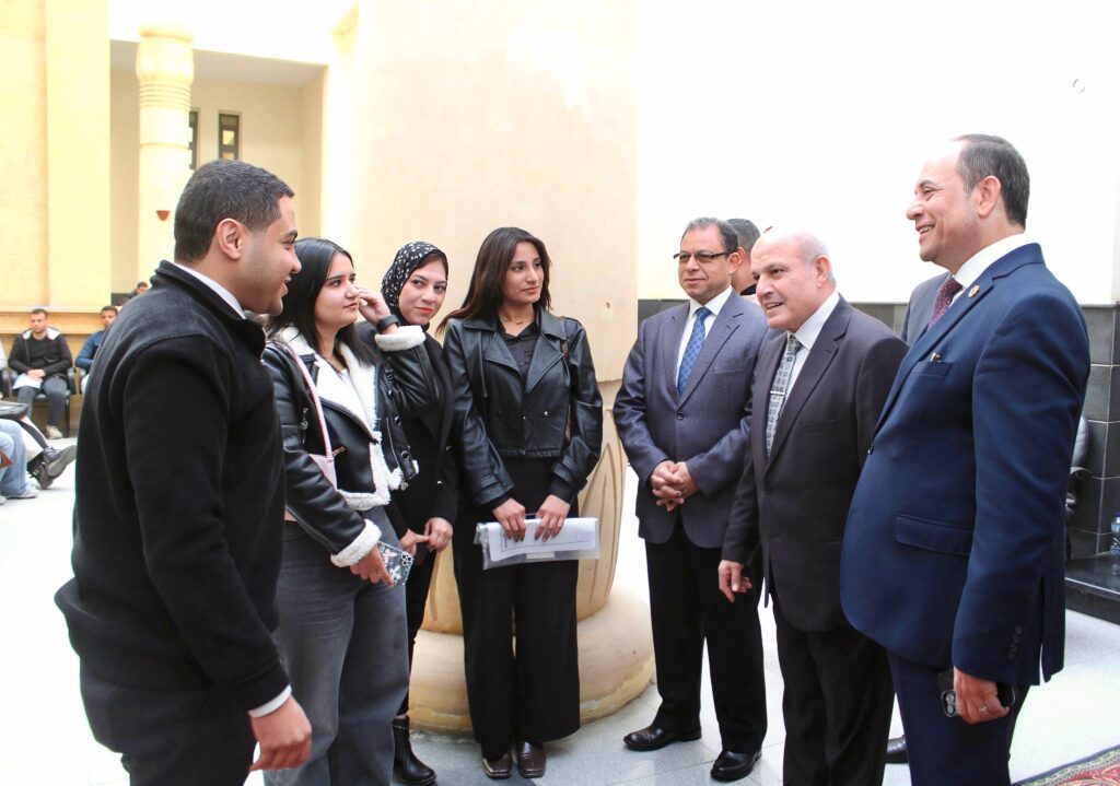 والتقى رئيس الهيئة، بعددٍ من المتقدمين المتواجدين بمقر رئاسة الهيئة اليوم من خريجي كلية الحقوق بجامعة سوهاج – وفقاً للجدول المعلن بالمواعيد المقررة للجامعات – واطمأن على سير كافة إجراءات سحب وتقديم الملفات بسلاسة ويسر، ووجه بتوفير كافة سُبُل الراحة وأماكن الانتظار اللائقة للمترددين على مقر رئاسة الهيئة خلال فترة التقديم، متمنياً التوفيق لكافة المتقدمين للالتحاق بالهيئة القضائية العريقة.