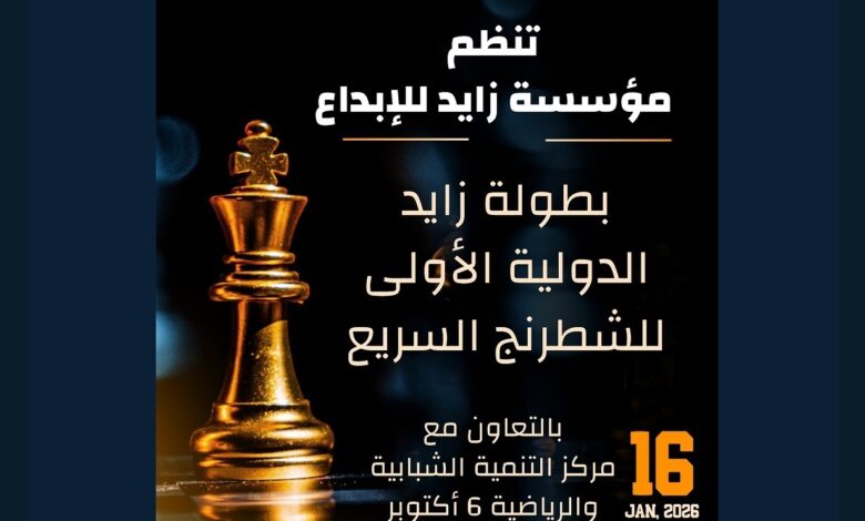 تتجه أنظار عشاق “لعبة الملوك” في مصر نحو مدينة السادس من أكتوبر، حيث أعلنت مؤسسة زايد للإبداع بقيادة المهندس عادل لطفي رئيس المؤسسة عن تنظيم النسخة الأولى من “بطولة زايد الدولية للشطرنج السريع” على (كأس المهندس حسن خالد)، والمقرر إقامتها يوم الجمعة المقبل.