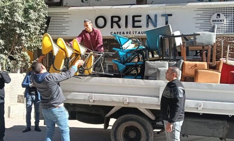 رفع اشغالات الكافيهات والمحال بشارع ناصر الثورة بالعمرانية