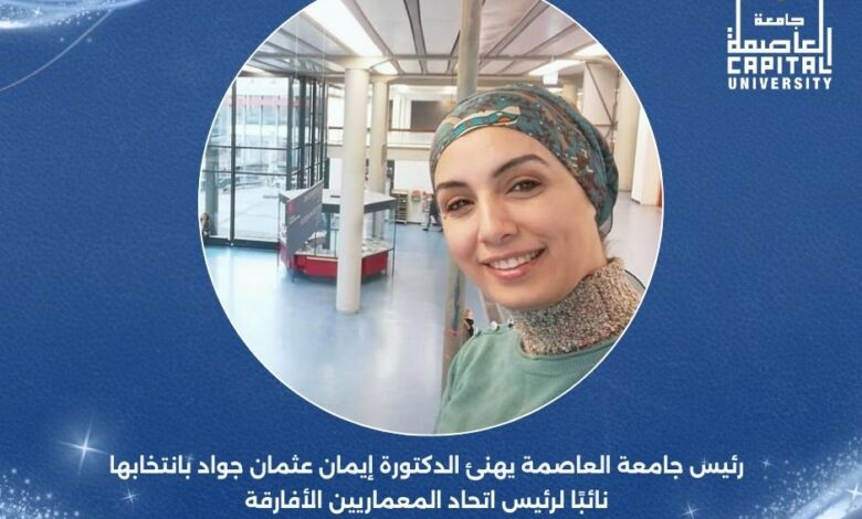 يتقدم الدكتور السيد قنديل، رئيس جامعة العاصمة، بخالص التهنئة إلى الأستاذة الدكتورة إيمان عثمان جواد، وكيل كلية خدمة المجتمع وتنمية الأعمال بالجامعة البريطانية في مصر، وذلك بمناسبة انتخابها نائبًا لرئيس اتحاد المعماريين الأفارقة (AUA) عن إقليم شمال أفريقيا.