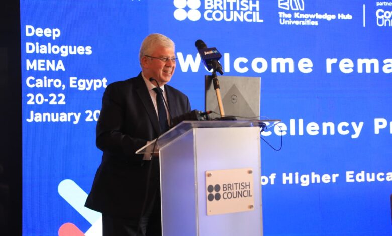 وأشار الوزير إلى أهمية التعاون بين المؤسسات الأكاديمية المصرية والمجلس الثقافي البريطاني بهدف تعزيز التعاون الأكاديمي والبحثي، وبناء قدرات أعضاء هيئة التدريس، ودعم الاعتماد الدولي، وتطوير المناهج، وتعزيز قابلية توظيف الخريجين، وصولًا إلى التوسع في اختبارات اللغة الإنجليزية وخدمات الامتحانات، بما يعزز الجودة والشفافية والاعتراف الدولي، مؤكدًا تقدير مصر للتعاون الممتد والبنّاء مع المملكة المتحدة في مجالي التعليم العالي والبحث العلمي، وهو تعاون يقوم على الثقة المتبادلة والالتزام المشترك بالجودة وبناء القدرات، مؤكدًا أن مصر تدرك أن المرحلة القادمة من التعليم العابر للحدود يجب ألا تقتصر على النماذج التقليدية، بل أن تتوسع لتشمل التعاون بين دول الجنوب والتعاون الثلاثي، بما يتيح الانتقال من التكيّف إلى التصميم المشترك للبرامج، وتبادل الخبرات التنظيمية وضمان الجودة، وتعزيز التعليم الرقمي، وتوسيع إتاحة التعليم الدولي بطرق أكثر شمولًا واستدامة.