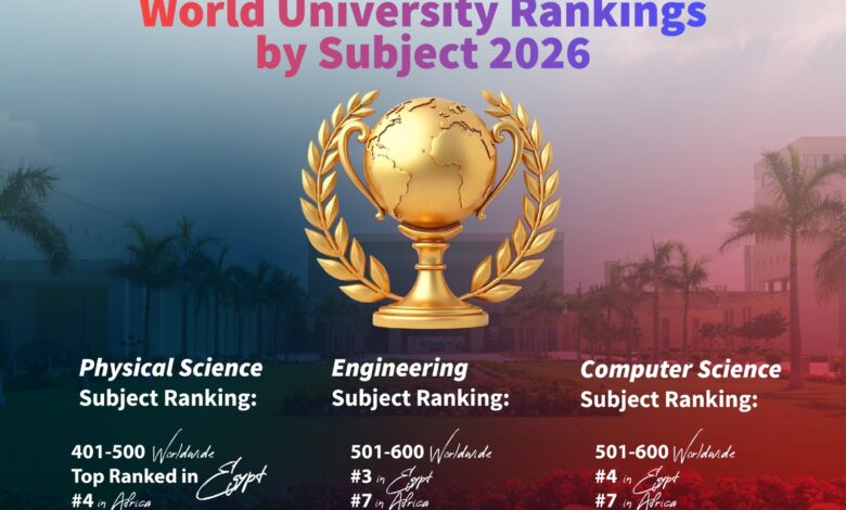 وأشار إلى أن الجامعة صُنفت أيضا ضمن الفئة 501–600 عالميًا في تخصص الهندسة، لتحتل المركز الثالث محليًا والسابع إفريقيًا، كما ظهرت للمرة الأولى في تصنيف علوم الحاسب ضمن الفئة 501–600 عالميًا، محتلة المركز الرابع في مصر والسابع في إفريقيا، وهو ما يعكس التطور المتسارع في هذا التخصص الحيوي داخل الجامعة.