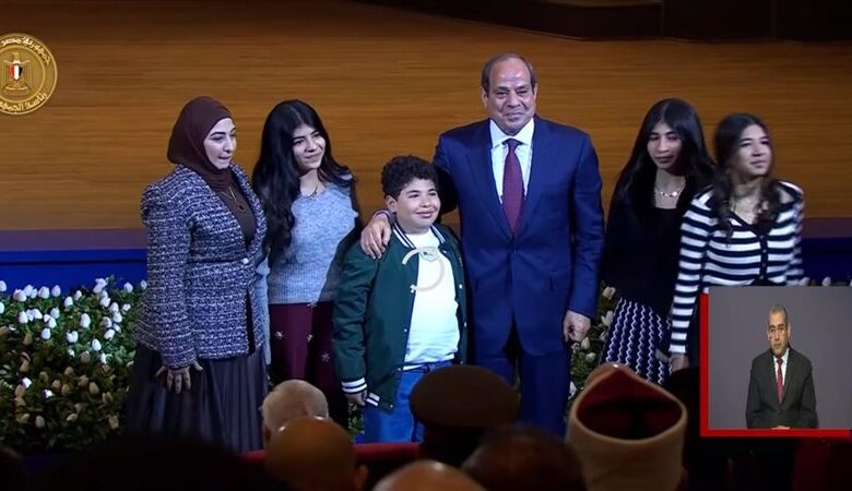 لحظة مؤثرة في احتفالات عيد الشرطة..نجل الشهيد رامي هلال يحتضن الرئيس السيسي باكيًا