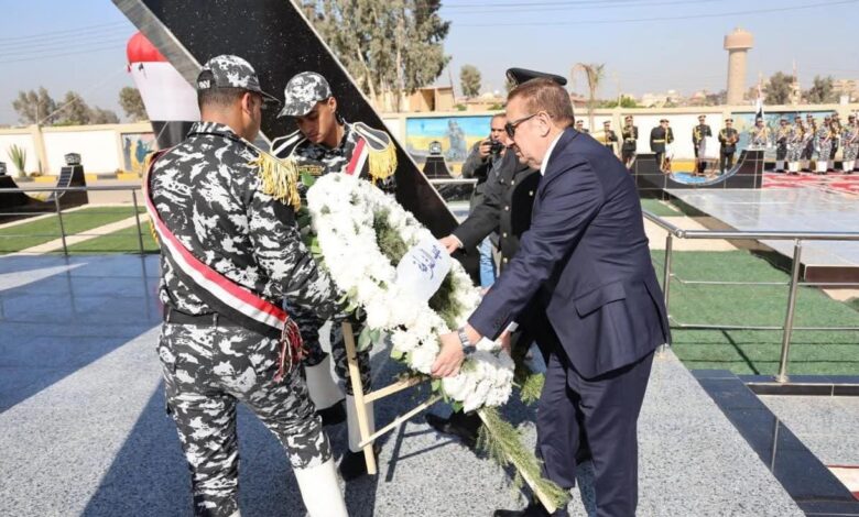 محافظ المنوفية ومدير الأمن يضعان إكليل الزهور علي النصب التذكاري لشهداء الشرطة