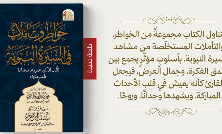 في إطار المشاركة الثقافية المتميزة للمجلس الأعلى للشئون الإسلامية، في معرض القاهرة الدولي للكتاب في دورته السابعة والخمسين، صدر حديثًا كتاب «خواطر وتأملات في السيرة النبوية»، وهو عمل فكري وروحي يعالج السيرة النبوية معالجة وجدانية وفكرية تجمع بين عمق المعنى وجمال العرض.