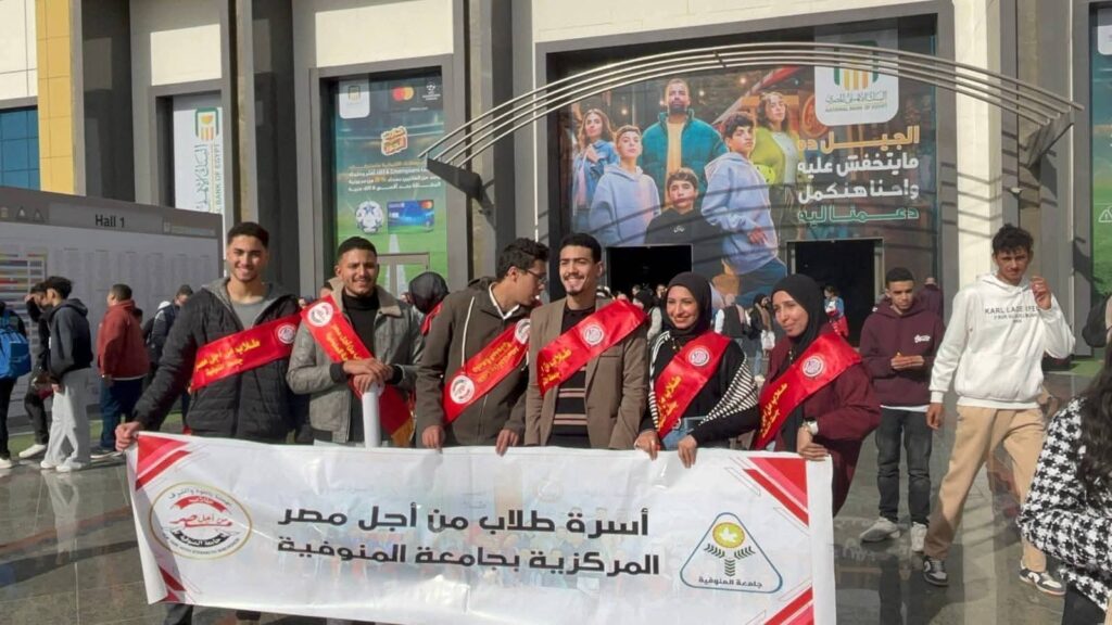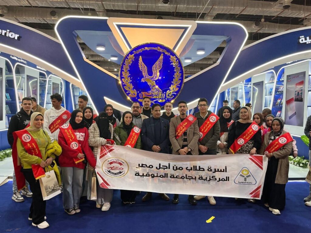 نظّمت أسرة طلاب من أجل مصر المركزية بجامعة المنوفية زيارة ميدانية إلى معرض القاهرة الدولي للكتاب، وذلك تحت رعاية الدكتور أحمد القاصد رئيس جامعة المنوفية والدكتور ناصر عبدالبارى نائب رئيس الجامعة لشئون التعليم والطلاب وبمشاركة الدكتور محمد زيدان عميد كلية التربية النوعية ورائد الأسرة، والدكتورة رانيا حامد والدكتورة نورهان موسى رائدا مساعد الأسرة المركزية، والدكتور محمد شاهين مدير عام الإدارة العامة لرعاية الشباب، والطالب عمر ابراهيم كلية الطب البيطري مقرر الأسرة والطالب أحمد عز كلية الحقوق مقرر مساعد، وذلك في إطار حرص الجامعة على دعم الأنشطة الطلابية الهادفة، وتنمية الوعي الثقافي والفكري لدى الطلاب، وتعزيز دورهم في بناء الشخصية المتكاملة.