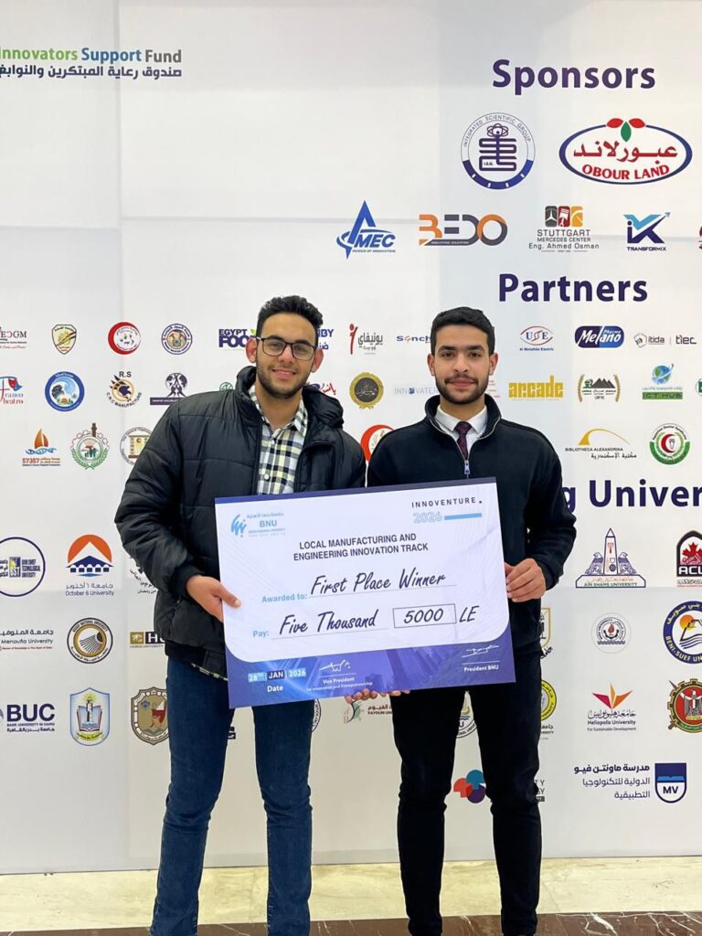 تتقدم جامعة الدلتا التكنولوجية برئاسة الدكتور وجيه احمد العسكرى بخالص التهنئة الى فريقين طلابين من الجامعة لحصولهما على المركزين الأول والرابع فى منتدى الابتكار الجامعى Innoventre 2026 تحت عنوان ” الإبتكار الجامعى فى خدمة الصناعة والتنمية المستدامة”، والذى نظمته جامعة بنها الأهلية.