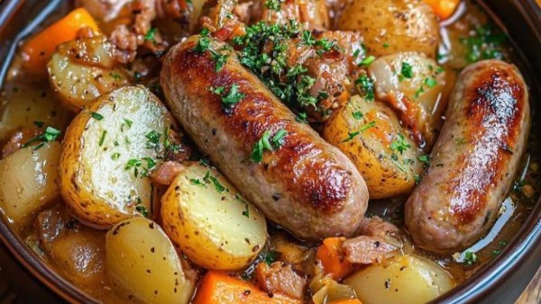طاجن السجق البلدي بالبطاطس والجزر.. وصفة سهلة بطعم بيتي أصيل
