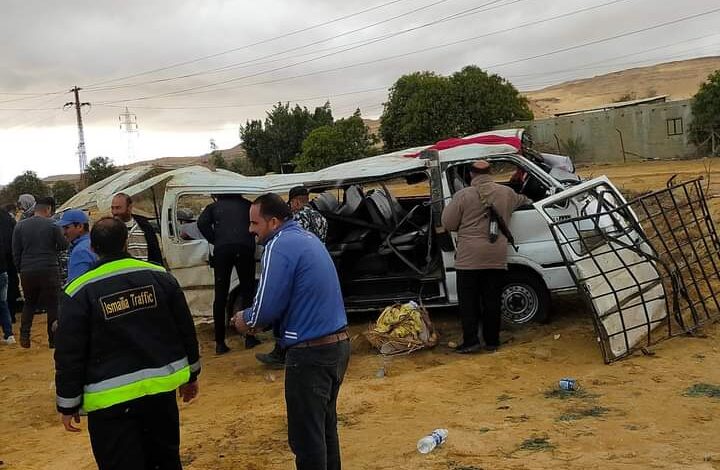 إصابة 11 شخصاً في حادث انقلاب ميكروباص بطريق الإسماعيلية