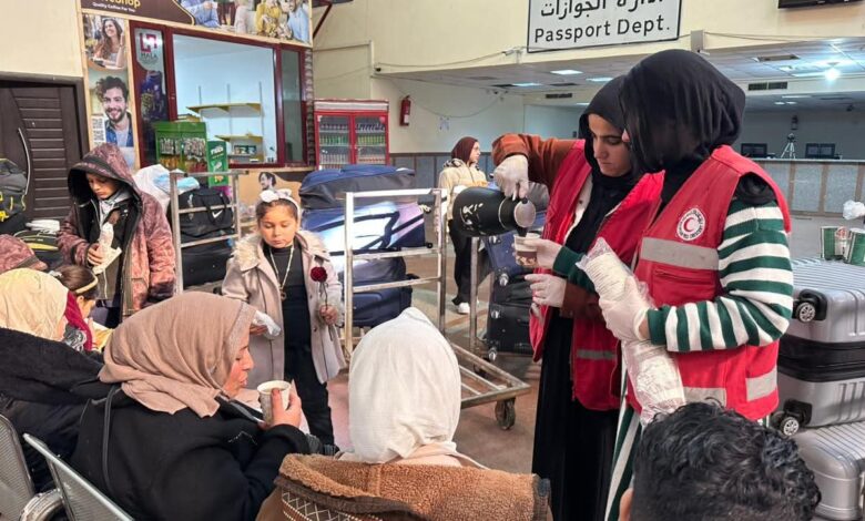 الهلال الأحمر المصري يواصل خدماته الإنسانية في استقبال وتوديع الأشقاء الفلسطينيين