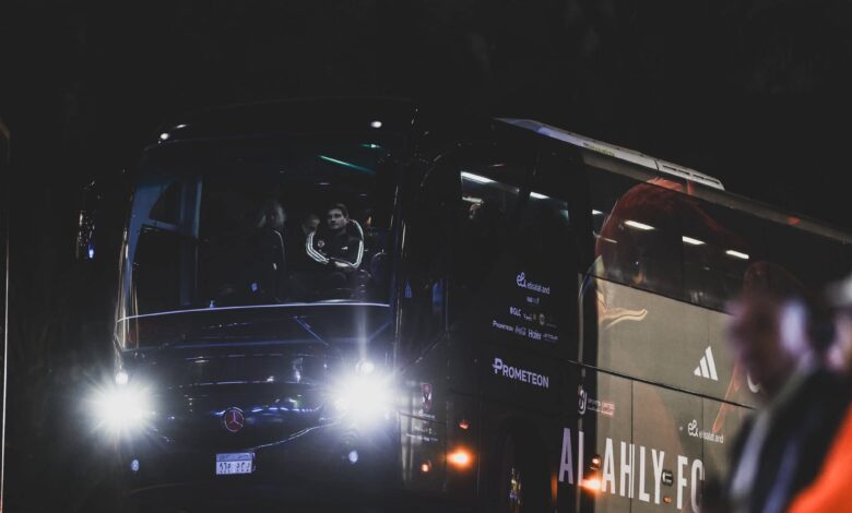 حافلة الأهلي تصل استاد القاهرة استعدادًا لمواجهة البنك في الدوري