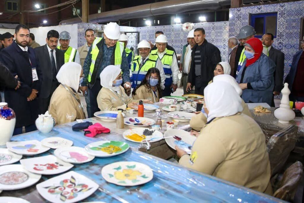كما شملت الجولة تفقد المراحل والأقسام الإنتاجية المختلفة، بما في ذلك قسم الإنتاج اليدوي، إلى جانب متابعة برامج التدريب داخل الشركة للعاملين بها، وكذلك طلاب عدد من الكليات والمعاهد والمدارس الفنية، في إطار دعم التعليم الفني وربط مخرجاته باحتياجات الصناعة، وتأهيل كوادر فنية مدربة قادرة على تلبية متطلبات سوق العمل. واطلع الوزير على التحديثات التكنولوجية التي أدخلتها الشركة مؤخرًا، والتي تضمنت ماكينة حفر بالليزر، وماكينة طباعة رقمية لإنتاج الموديلات، وماكينة طباعة ثلاثية الأبعاد بخامات الطينة المباشرة، والتي تستهدف الحفاظ على المعلومات التصميمية، وتسهيل عمليات التعديل والتطوير، وربط منظومة التصميم بعمليات التسعير والإنتاج، بما يتماشى مع النظم الصناعية الحديثة، ويعزز القدرة التنافسية للمنتجات.