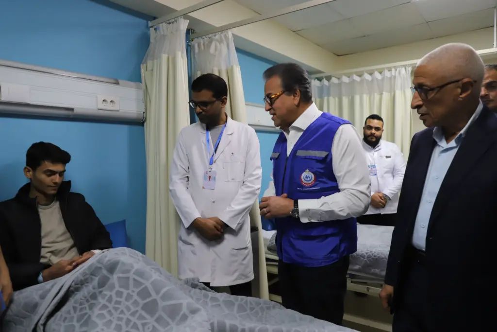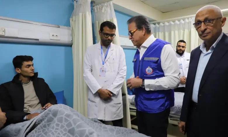 وزير الصحة ومحافظ شمال سيناء يلتقيان المصابين الفلسطينيين بمستشفى العريش