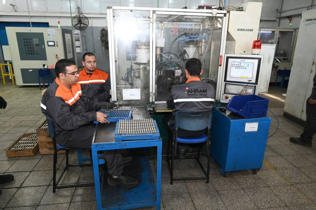 واستهل الوزير جولته بزيارة مصنع مجموعة الأهرام لنظم الأمان (كوالين وأقفال ومفصلات ومقابض بمختلف أنواعها ومكوناتها) والذي يقام على مساحة 35 ألف متر مربع، ويبلغ رأس مال الشركة 1.5 مليار جنيه، وتبلغ طاقتها الإنتاجية 10 ملايين كالون سنوياً، ونسبة المكون المحلي 100%، وتصدر الشركة منتجاتها لأسواق 27 دولة في اوروبا وافريقيا وآسيا وأمريكا الجنوبية وتوظف أكثر من 1200 فرداً، وقد كان في استقبال الوزير بالمصنع الدكتور/ سمير عارف رئيس الشركة وعدد من قيادات الشركة، وتفقد الوزير خلال الزيارة خطوط إنتاج الكوالين والمفاتيح ومعمل الجودة ووحدة معالجة الصرف الصناعي كما تفقد معرضاً للمنتجات النهائية للمصنع.