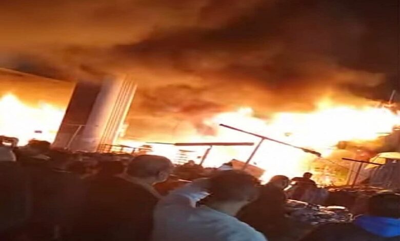 حريق هائل في باكيات عدد من المحلات أمام محطة مترو المرج