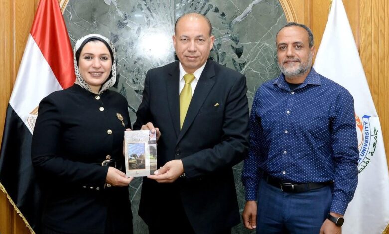 استقبل الدكتور شريف خاطر، رئيس جامعة المنصورة، الدكتور هشام سلام، مؤسس مركز جامعة المنصورة للحفريات الفقارية، والدكتورة شروق الأشقر، الباحثة بالمركز ومؤلفة كتاب «قصة الديناصورات المصرية»، حيث قدّم فريق المركز نسخة من الإصدار العلمي الصادر ضمن سلسلة «اقرأ العلمي»، والذي شارك في معرض القاهرة الدولي للكتاب هذا العام.