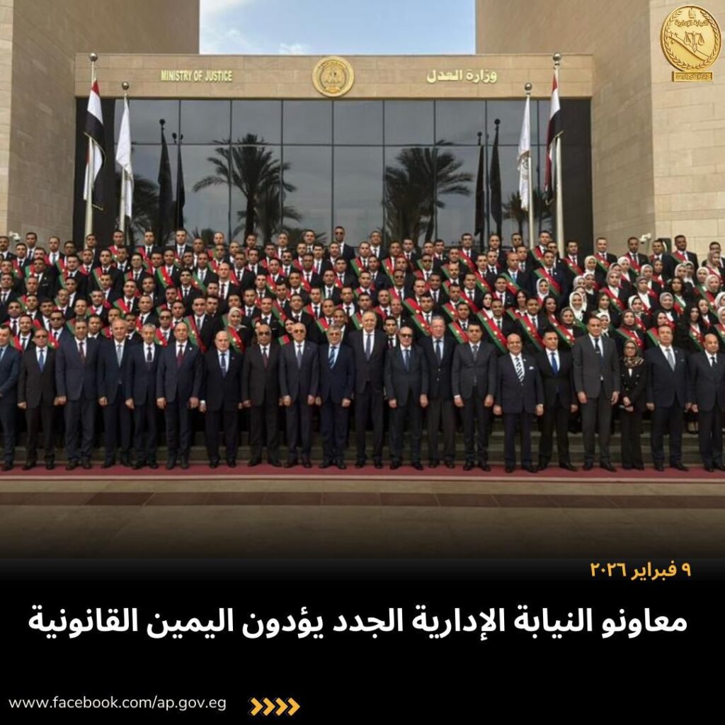 بتشريف المستشار عدنان فنجري وزير العدل.. شهد المستشار محمد الشناوي – رئيس هيئة النيابة الإدارية، صباح اليوم الاثنين الموافق ٩ فبراير ٢٠٢٦، مراسم أداء اليمين القانونية للسيدات والسادة معاوني النيابة الإدارية الجدد المعينين بالقرار الجمهوري الصادر برقم ٥١ لسنة ٢٠٢٦، وذلك بمقر وزارة العدل بالعاصمة الجديدة.